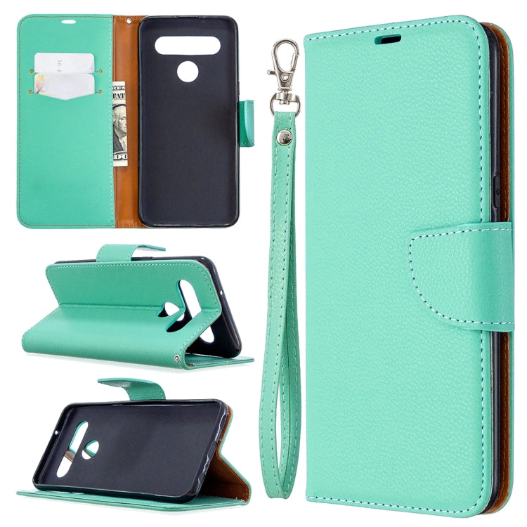 Funda de Cuero para LG K61 Litchi Texture con Soporte, Ranuras para Tarjetas y Cordón (Verde)