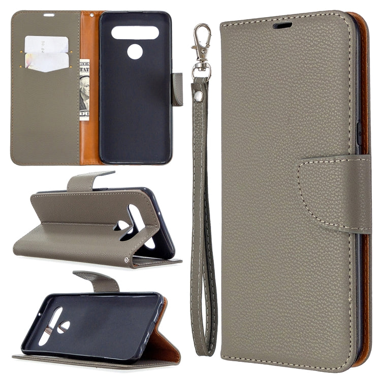 Funda de Cuero LG K61 Litchi Texture con Tapa Horizontal, Soporte, Ranuras y Cordón (Gris)