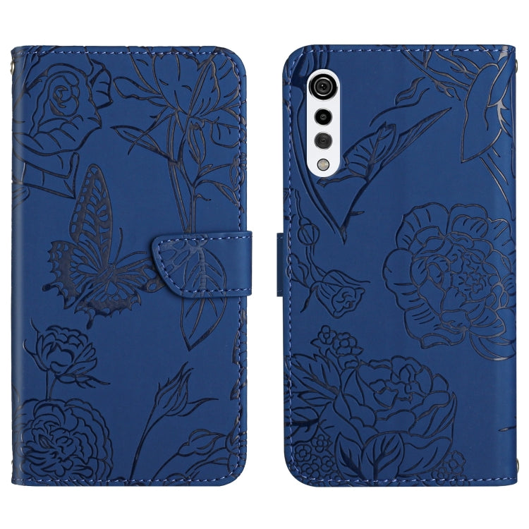 Funda de Cuero para LG Velvet 2 Pro con Relieve Peonía y Mariposa (Azul)