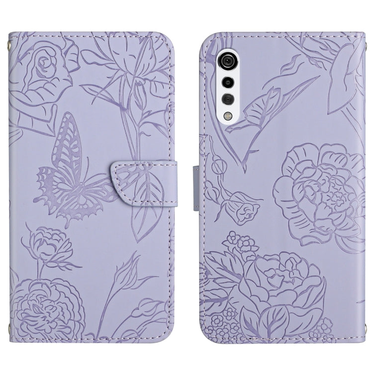 Funda para LG Velvet 2 Pro Cuero En Relieve Peonía y Mariposa (Púrpura)