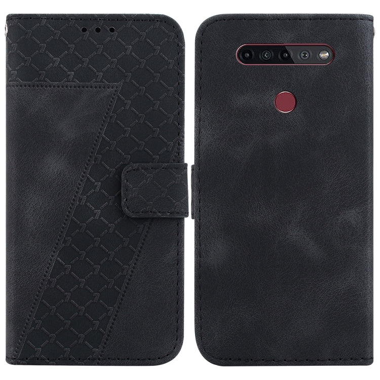 Funda de Cuero En Relieve en Forma de 7 para LG K52 / K62 / Q52 (Negro)