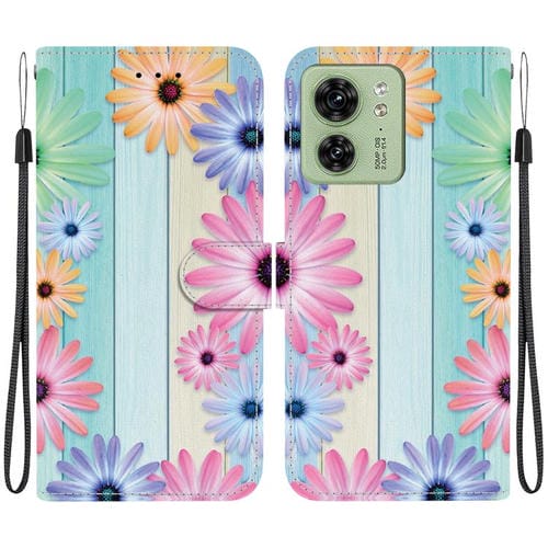Funda de Cuero Motorola Edge 50 Neo 5G con Dibujo de Colores y Textura de Cristal (Flores de Jade)