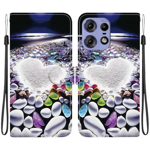 Funda de Cuero para Motorola Edge 50 Pro con Dibujo de Colores y Textura de Cristal (Corazón)