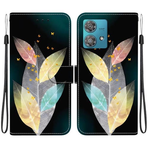 Funda de Cuero Motorola Edge 40 Neo con Dibujo y Textura de Cristal (Hojas de Colores)