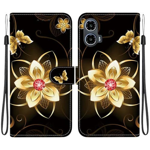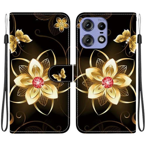 Funda de Cuero con Dibujo y Textura de Cristal para Motorola Edge 50 Pro (Flor Dorada)