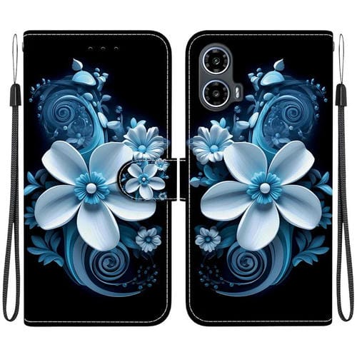 Funda de Cuero para Motorola Moto G75 5G con Dibujo de Colores y Textura de Cristal (Orquídea Negra)