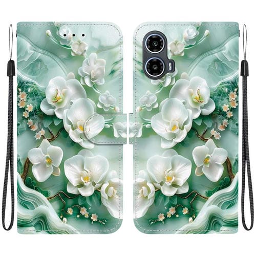 Funda de Cuero Motorola Moto G54 con Dibujo de Colores y Textura de Cristal (Flores de Jade)