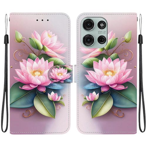 Funda de Cuero con Dibujo de Colores y Textura de Cristal para Motorola Moto G85 (Lotus)