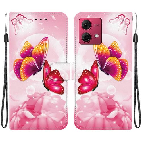 Funda de Cuero para Motorola Moto G84 con Dibujo de Colores y Textura de Cristal (Mariposas Rosas)