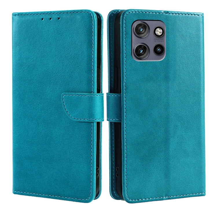 Funda de Cuero con Textura de Sarga y Botones Laterales para Motorola Moto G Stylus 5G (2024) (Azul)