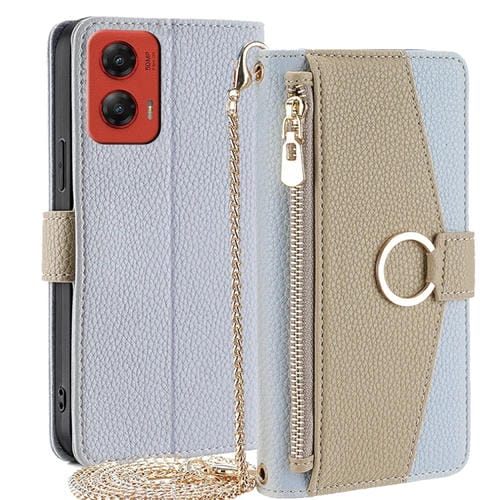 Funda de Cuero con Textura de Lichi para Motorola Moto G 5G 2024 (Azul)