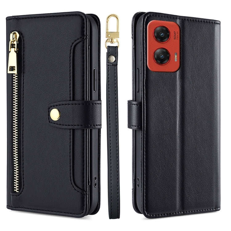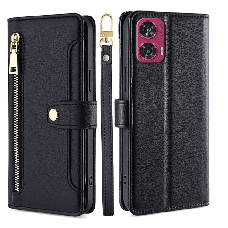 Funda de Cuero con Cremallera y Textura de Oveja para Motorola Moto G Stylus 5G (2024) (Negro)
