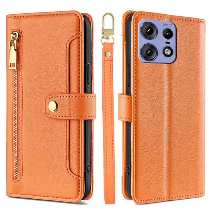 Funda de Cuero con Cremallera y Textura de Oveja para Motorola Edge 50 Pro 5G (Naranja)