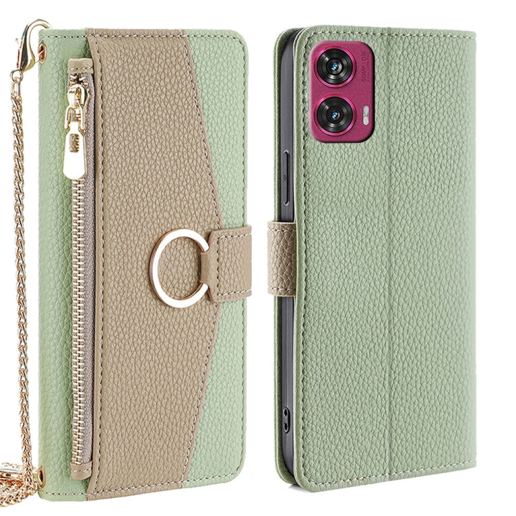 Funda de Cuero con Textura de Lichi para Motorola Edge 50 Fusion 5G (Verde)