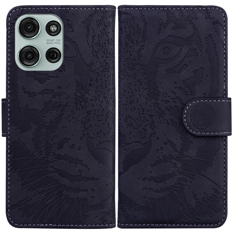 Funda de Cuero con Relieve de Tigre para Motorola Moto G75 5G (Azul Oscuro)