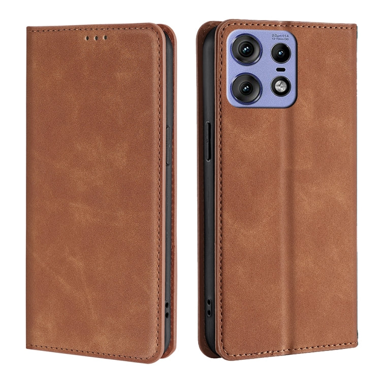 Funda de Cuero Magnética con Tacto de Piel para Motorola Edge 50 Fusion 5G (Marrón Oscuro)