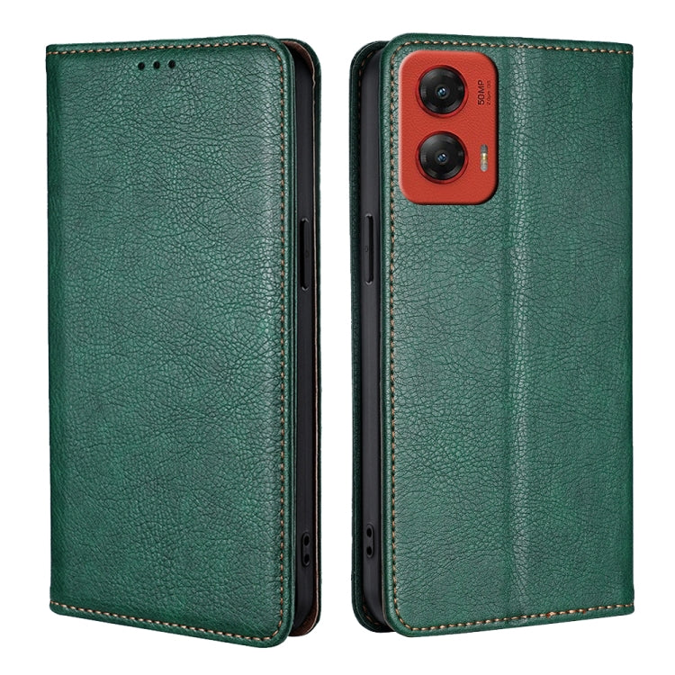 Funda de Cuero Magnética para Motorola Edge 50 Pro 5G con Acabado Brillante y Aceite Sólido (Verde)