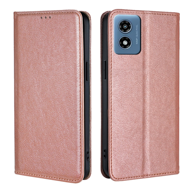 Funda de Cuero Magnética para Motorola Moto G 5G (2024) con Acabado Brillante (Oro Rosa)