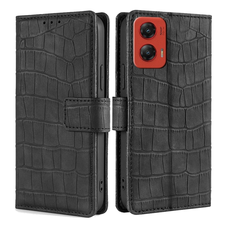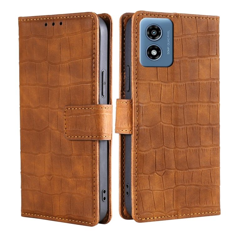 Funda de Piel con Cierre Magnético y Diseño de Cocodrilo para Motorola Moto G 5G (2024) (Marrón)