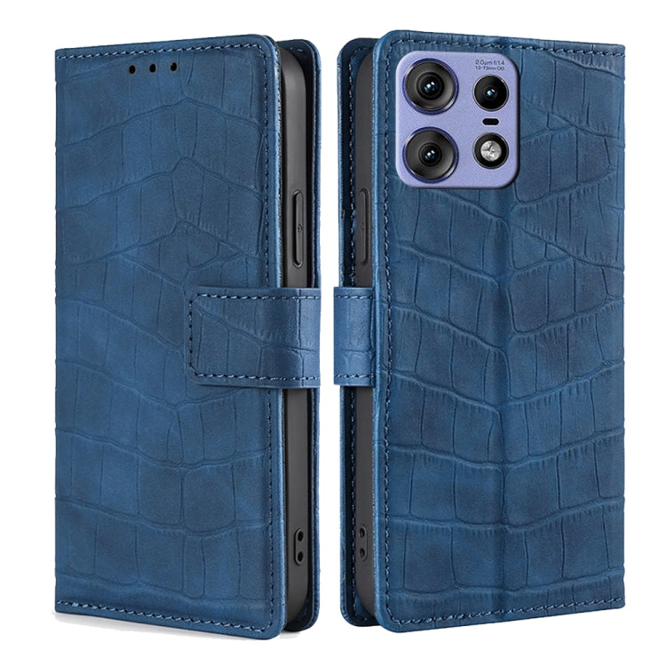Funda de Piel para Motorola Edge 50 Fusion 5G con Cierre Magnético y Diseño de Cocodrilo (Azul)