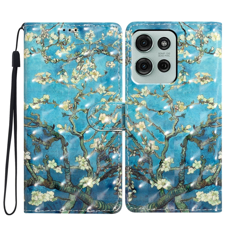 Funda de Cuero con Patrón 3D para Motorola Moto G75 5G (Flor de Albaricoque con Base Azul)