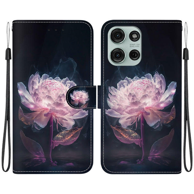 Funda de Cuero con Dibujo y Textura de Cristal para Motorola Moto G75 5G (Peonía Morada)