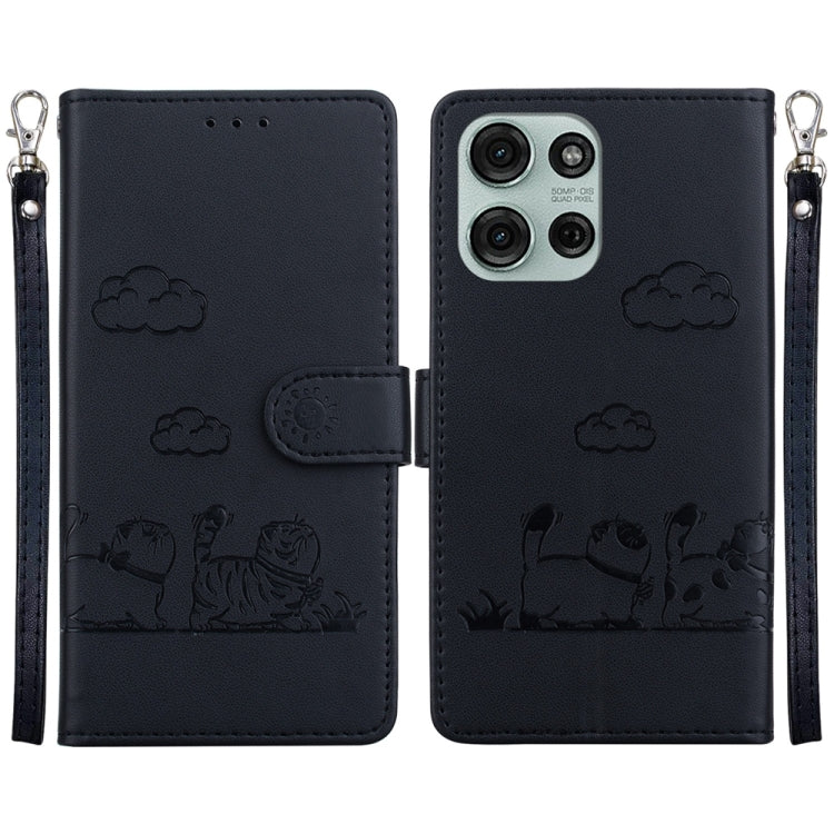 Funda de Cuero Rfid para Motorola Moto G75 5G con Diseño de Gatos (Negra)