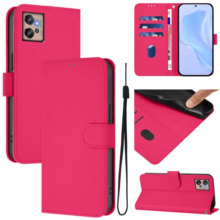 Funda de Piel Sintética con Cordón para Motorola Edge 2022 (Rosa y Rojo)