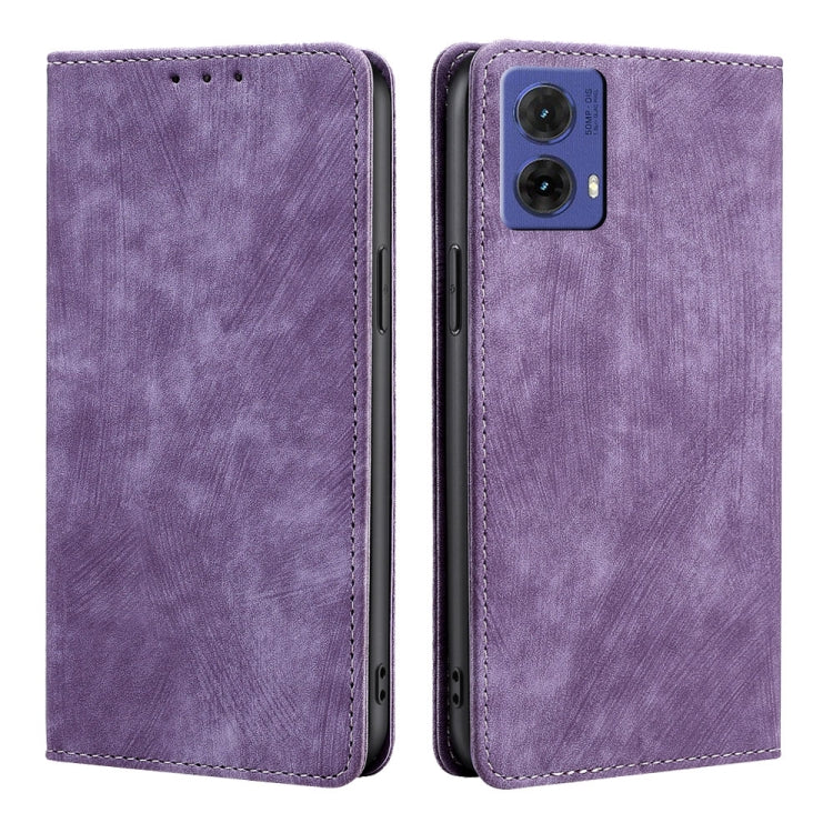 Funda de Cuero Magnética con Cepillo Antirrobo RFID para Motorola Edge 50 5G (Morado)