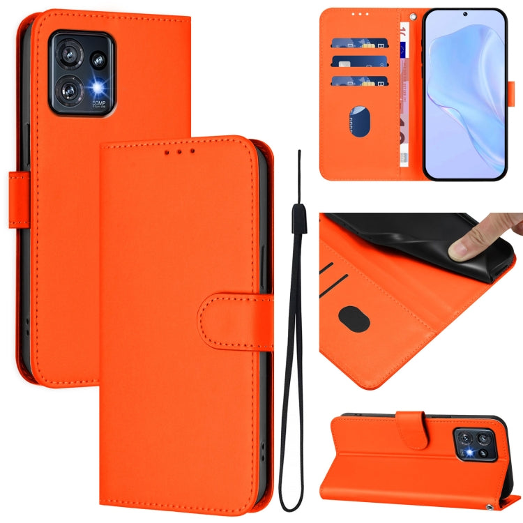Funda de Piel con Cordón para Motorola Edge+ 2023 Moto X40 con Tacto de Piel (Naranja)