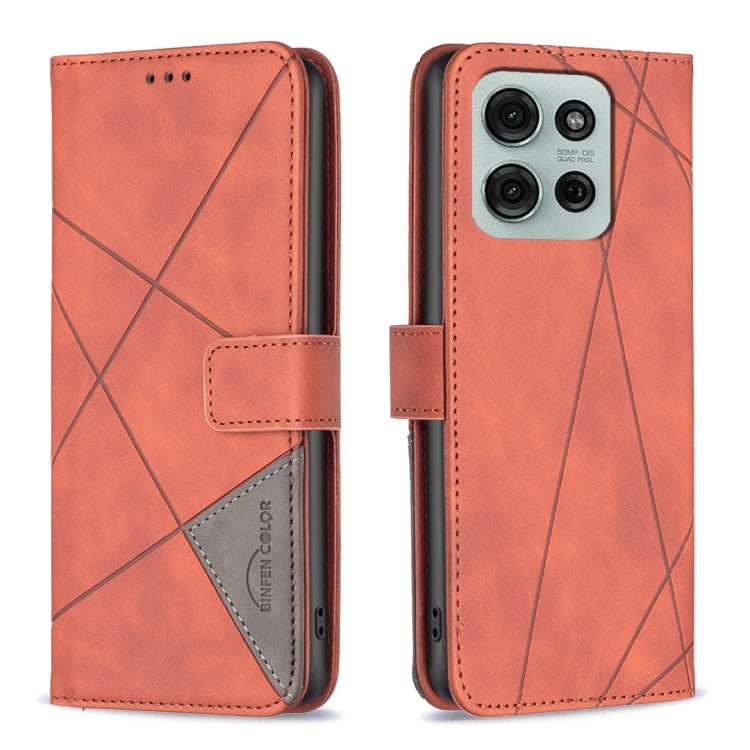 Funda de Cuero con Textura de Rombos y Hebilla Magnética para Motorola Moto G75 5G (Marrón)
