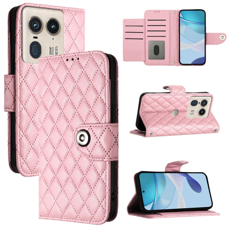 Funda de Cuero para Motorola Edge 50 con Tapa Textura Ultra Romboidal y Cordón (Rosa)