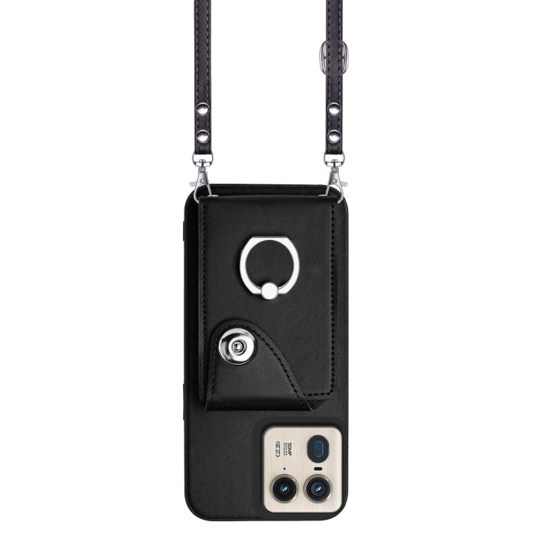 Funda para Teléfono Motorola Edge 50 Fusion con Aro, Tarjetero y Cordón Largo (Negro)