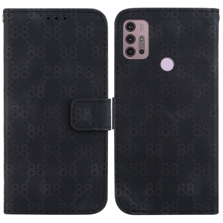 Funda de Cuero en Relieve para Motorola Moto G30, G10, G20, G10 Power Doble 8 (Negro)