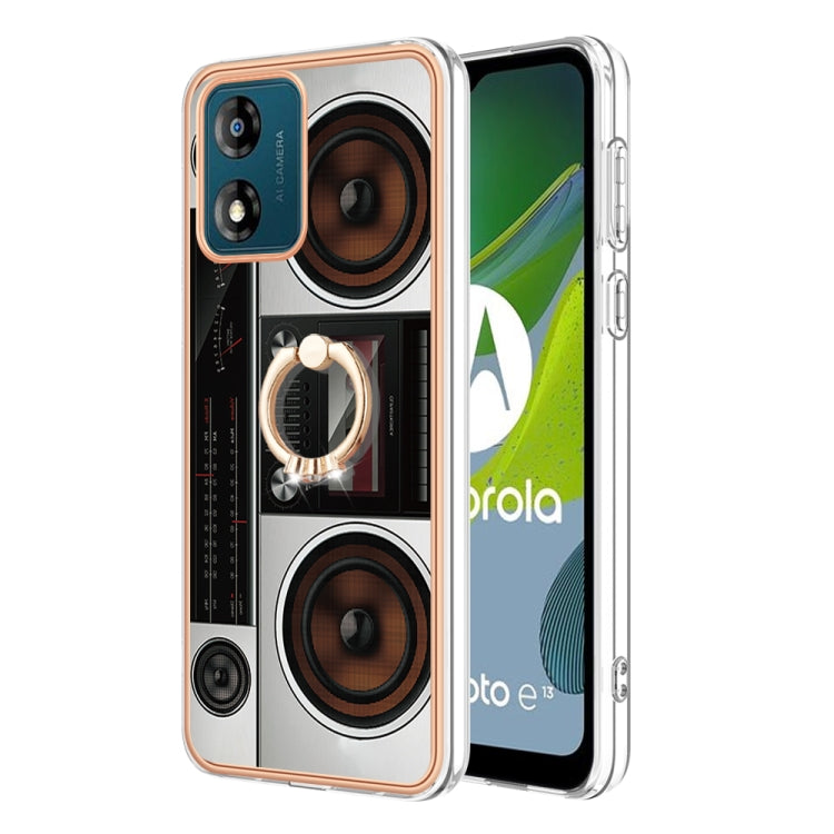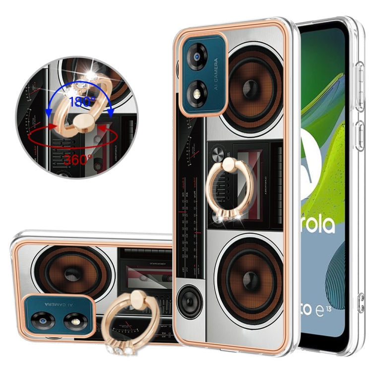Funda para Motorola Moto E13 Galvanoplastia Doble Cara con Soporte para Anillo (Radio Retro)