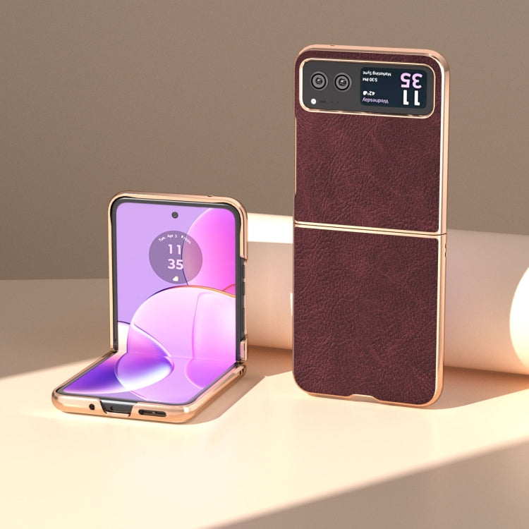 Funda para Motorola Razr 40 Nano Plating Serie Weilai de Cuero Genuino (Café)