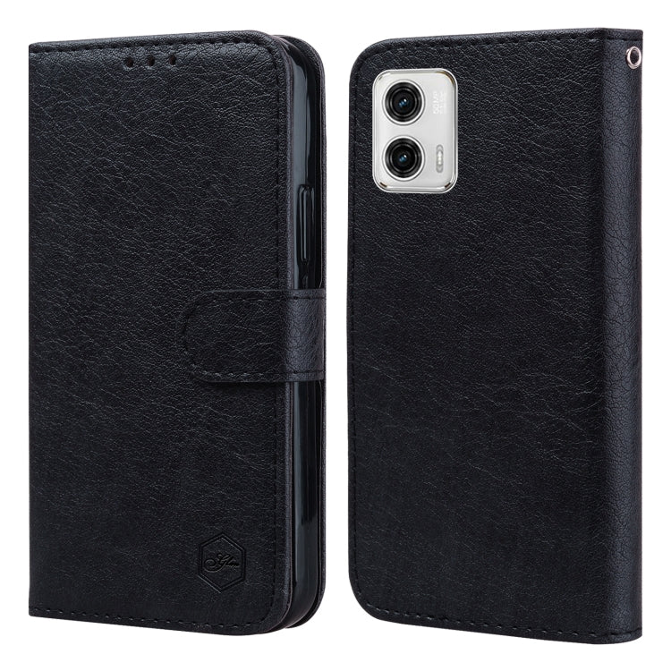 Funda para Motorola Moto G73 Sensación de Piel Aceite Textura de Cuero PU + TPU (Negro)