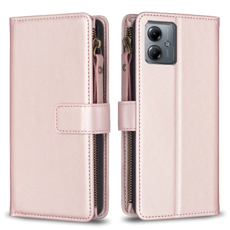 Funda Cartera para Motorola Moto G14 4G con 9 Ranuras para Tarjetas y Cremallera (Oro Rosa)