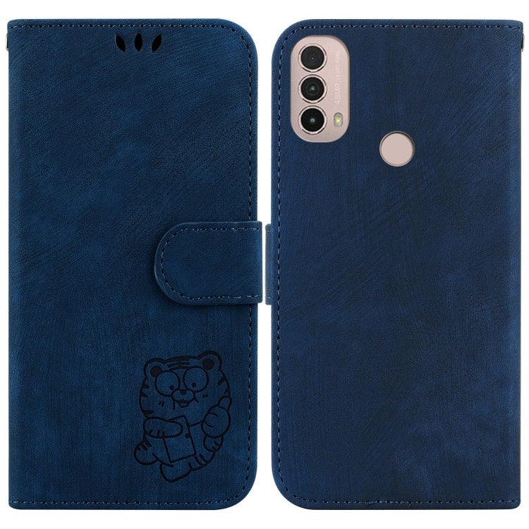 Funda para Motorola Moto E20 E30 E40 de Cuero con Relieve Little Tiger (Azul Oscuro)