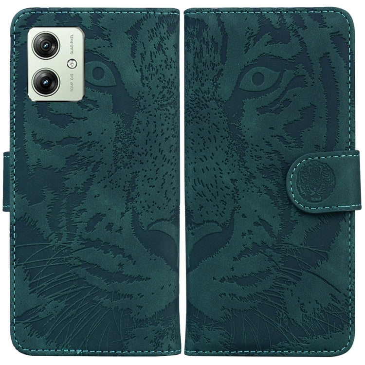 Funda de Cuero para Motorola Moto G54 Tiger con Diseño Embossed Pattern (Verde)