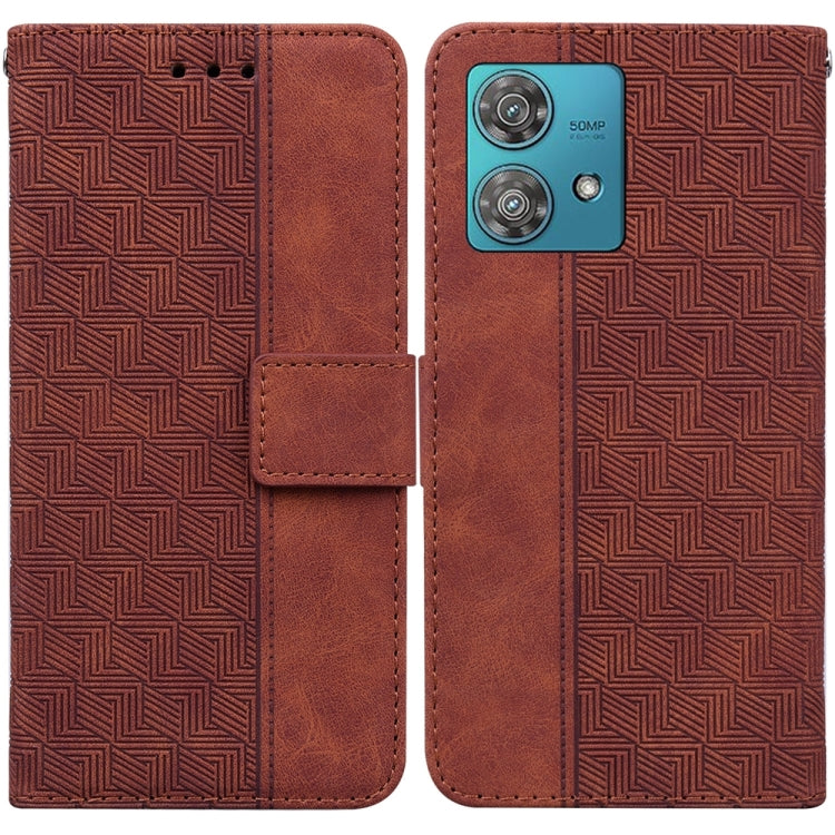 Funda de Cuero para Motorola Edge 40 Neo con Relieve Geométrico (Marrón)