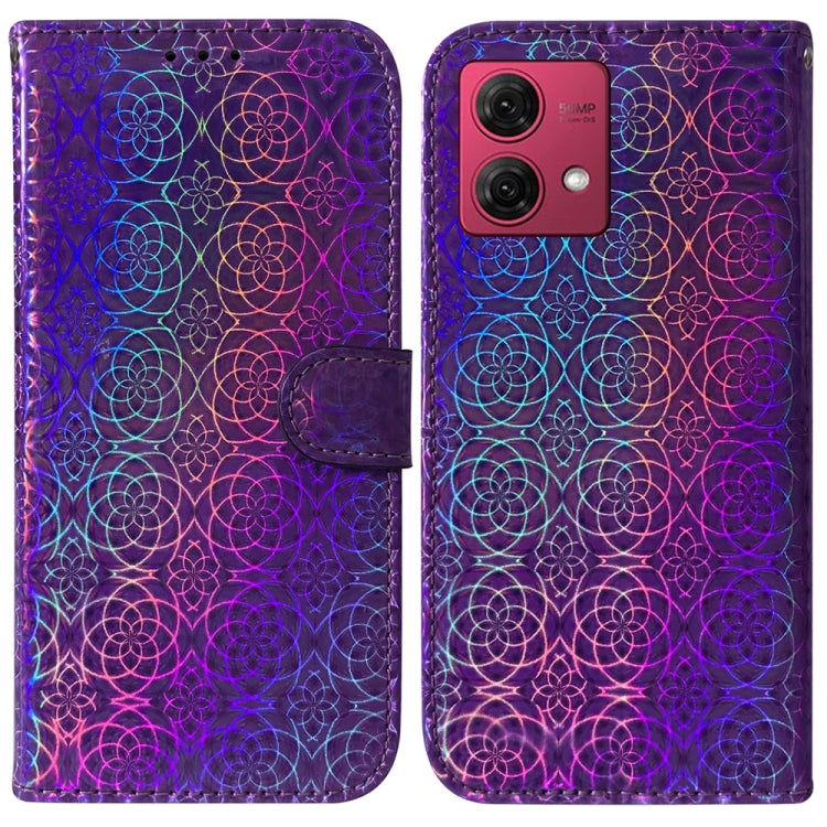 Funda de Cuero para Motorola Moto G84 con Hebilla Magnética Colorida (Púrpura)