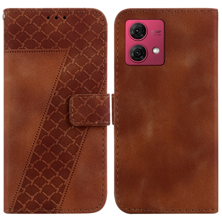 Funda de Cuero para Motorola Moto G84 con Relieve en Forma de 7 (Marrón)