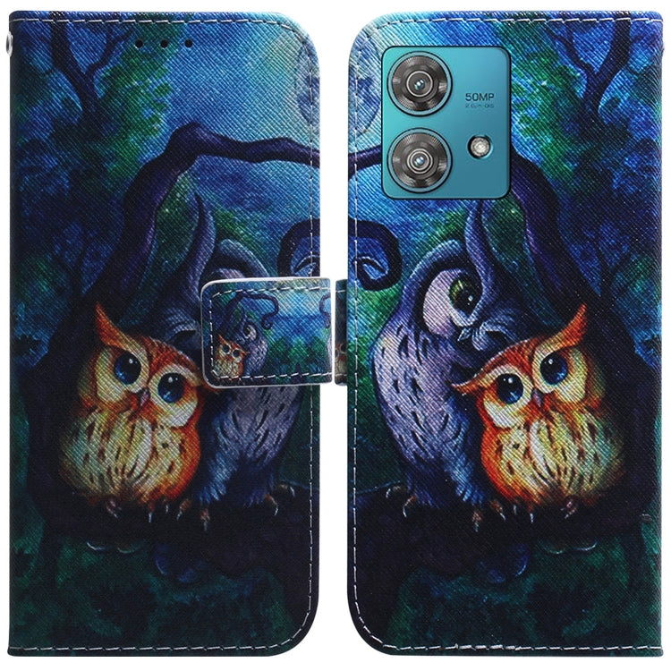 Funda de Cuero para Motorola Edge 40 Neo con Tapa y Dibujo Búho de Pintura al Óleo