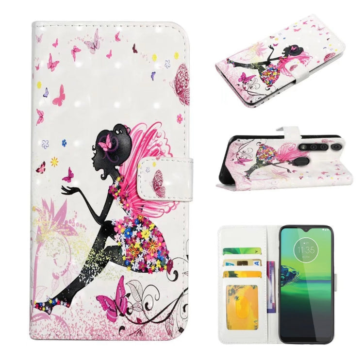Funda de Cuero para Motorola Moto G8 Play con Dibujo 3D en Relieve al Óleo (Hada de Flores)