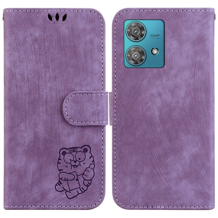 Funda de Cuero Motorola Edge 40 Neo Little Tiger en Relieve (Púrpura)
