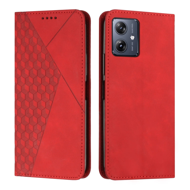 Funda de Cuero Magnética para Motorola Moto G54 Diamond Splicing Skin Feel (Rojo)