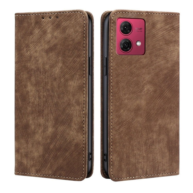 Funda de Cuero Magnética para Motorola Moto G84 5G con Rfid y Cepillo Antirrobo (Marrón)