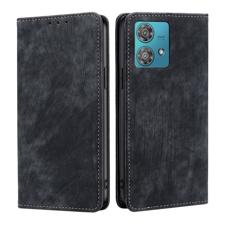 Estuche para Motorola Edge 40 Neo 5G de Cuero Magnético con RFID y Cepillo Antirrobo (Negro)