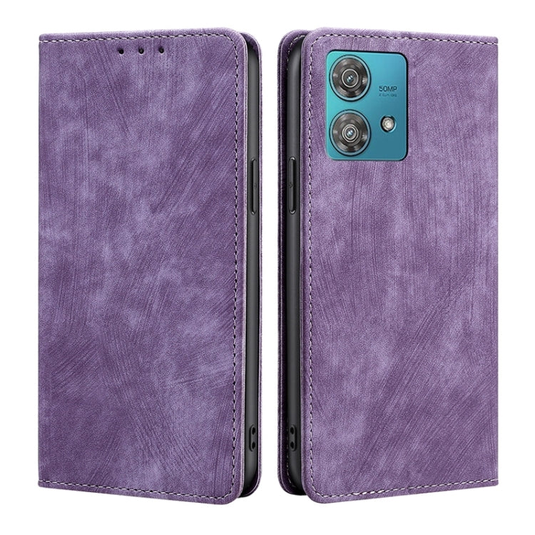 Estuche para Motorola Edge 40 Neo 5G de Cuero Magnético con Rfid y Cepillo Antirrobo (Púrpura)